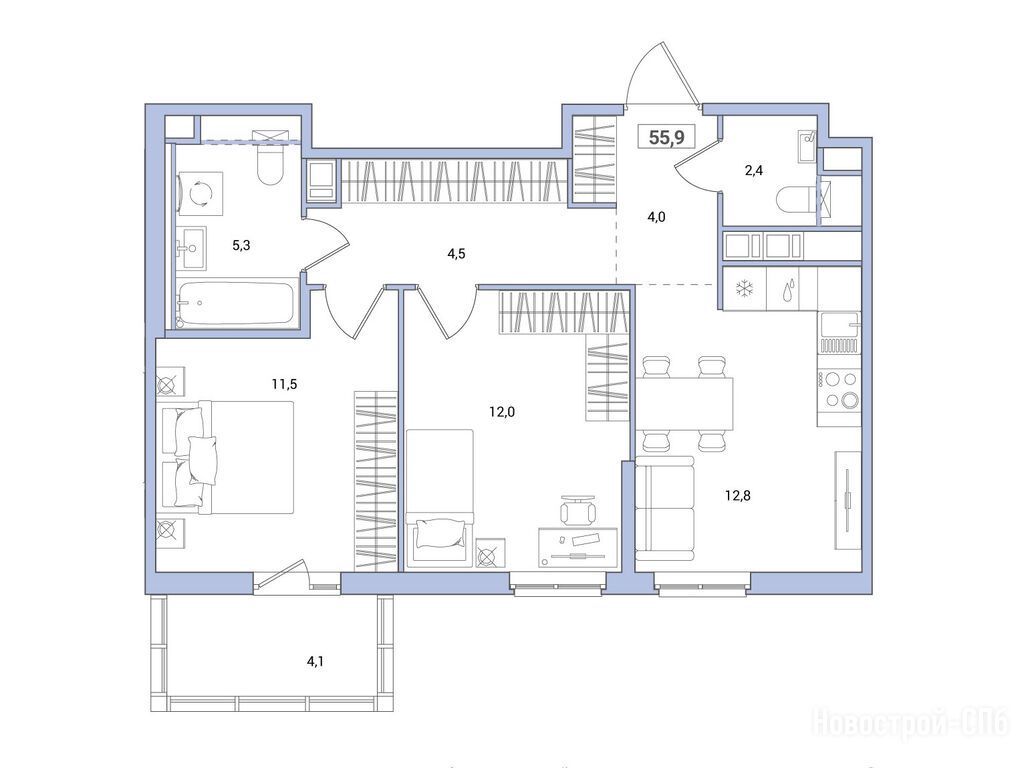 Продается двухкомнатная квартира в новостройке ЖК «Янила Форест» по адресу Ленинградская область, Всеволожский район, Янино-1, ул. Голландская. Общая площадь квартиры - 55.8 кв. м. Тип проекта, по которому построен дом — Монолитно-панельный, компания-застройщик — «Ленстройтрест». Стоимость квартиры — 8 693 640 руб. Способы оплаты можно уточнить у продавца. Срок сдачи — 4 квартал 2026. Более подробная информация по телефону.