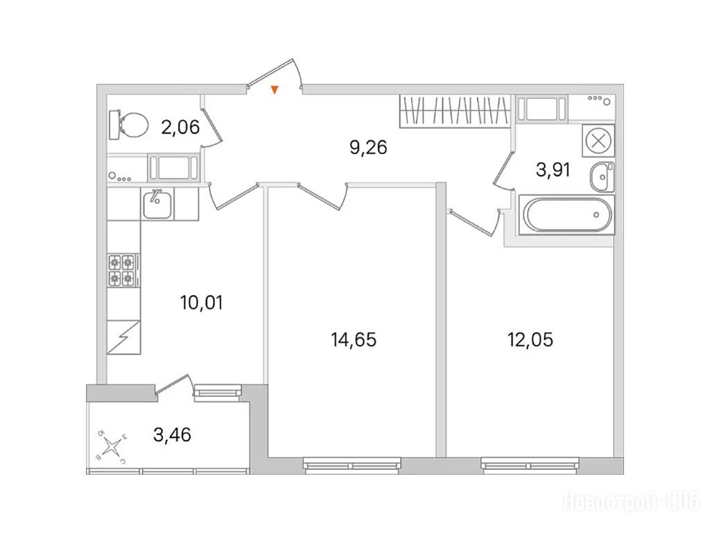 2-комн. квартира 57,21 м2 10 915 668