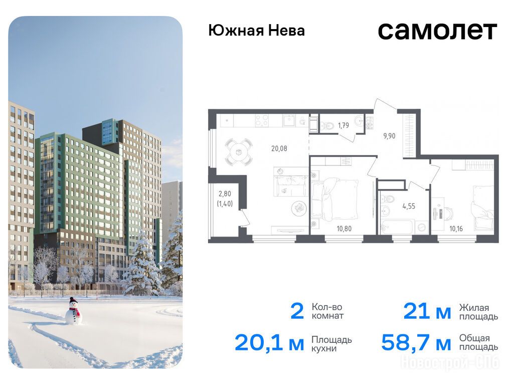 Продается двухкомнатная квартира в новостройке ЖК «Южная Нева» по адресу Ленинградская область, Всеволожский район, Свердловское г. п., д. Новосаратовка корпус 2. Общая площадь квартиры - 58.68 кв. м. Тип проекта, по которому построен дом — Монолитно-кирпичный, компания-застройщик — Самолет. Стоимость квартиры — 10 244 619 руб. Способы оплаты можно уточнить у продавца. Срок сдачи — 4 квартал 2027. Более подробная информация по телефону.