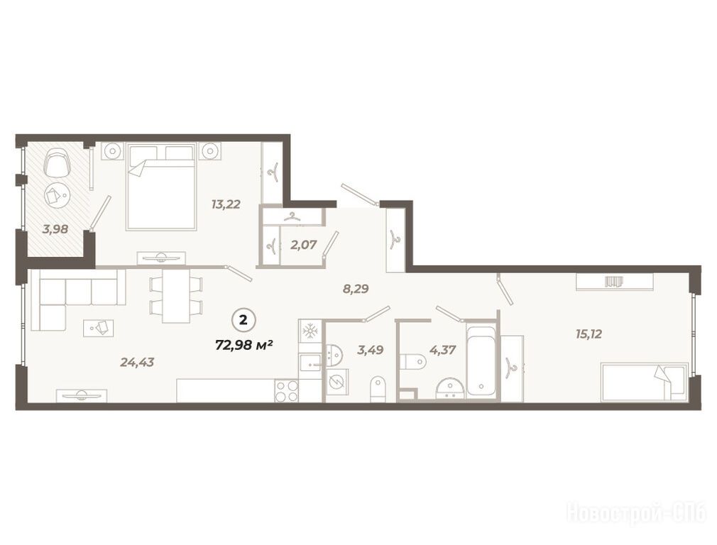 Продается двухкомнатная квартира в новостройке ЖК «Знатный» по адресу Санкт-Петербург, Московский, ул. Коли Томчака, д. 21, литера В. Общая площадь квартиры - 72.98 кв. м. Тип проекта, по которому построен дом — Монолитно-кирпичный, компания-застройщик — ГК Вертикаль, СЗ Орбита. Стоимость квартиры — 24 448 300 руб. Способы оплаты можно уточнить у продавца. Срок сдачи — 3 квартал 2027. Более подробная информация по телефону.
