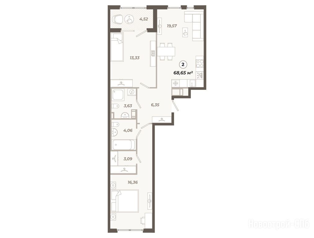 Продается двухкомнатная квартира в новостройке ЖК «Знатный» по адресу Санкт-Петербург, Московский, ул. Коли Томчака, д. 21, литера В. Общая площадь квартиры - 68.65 кв. м. Тип проекта, по которому построен дом — Монолитно-кирпичный, компания-застройщик — ГК Вертикаль, СЗ Орбита. Стоимость квартиры — 26 292 950 руб. Способы оплаты можно уточнить у продавца. Срок сдачи — 3 квартал 2027. Более подробная информация по телефону.