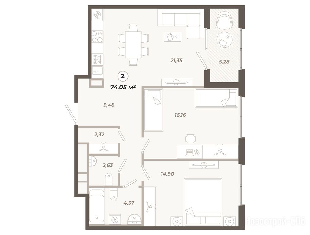 Продается двухкомнатная квартира в новостройке ЖК «Знатный» по адресу Санкт-Петербург, Московский, ул. Коли Томчака, д. 21, литера В. Общая площадь квартиры - 74.05 кв. м. Тип проекта, по которому построен дом — Монолитно-кирпичный, компания-застройщик — ГК Вертикаль, СЗ Орбита. Стоимость квартиры — 24 806 750 руб. Способы оплаты можно уточнить у продавца. Срок сдачи — 3 квартал 2027. Более подробная информация по телефону.