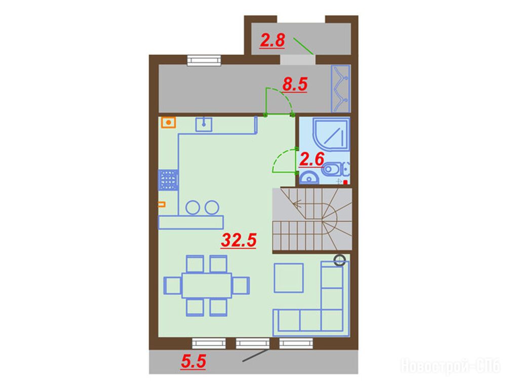 5-комн. таунхаус, 93.50 м2, 2 этажа