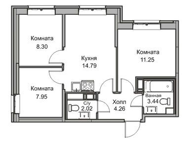 Продажа 65.00 — 75.20 м2 18.5 — 18.9 млн руб. 3 помещения
