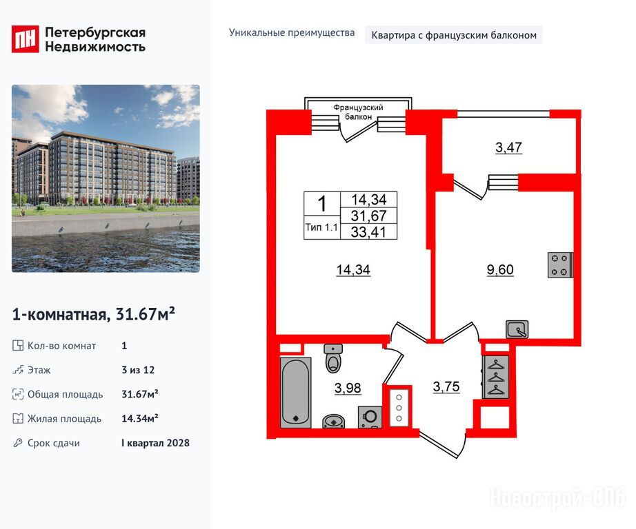 Продается однокомнатная квартира в новостройке Setl Ривьера по адресу Санкт-Петербург, Невский, Октябрьская набережная (корп. 1.1). Общая площадь квартиры - 31.67 кв. м. Тип проекта, по которому построен дом — Монолитно-кирпичный, компания-застройщик — ООО «СЗ ПОТЕНЦИАЛ», Setl Group (Сэтл Групп). Стоимость квартиры — 11 350 069 руб. Способы оплаты можно уточнить у продавца. Срок сдачи — 1 квартал 2028. Более подробная информация по телефону.
