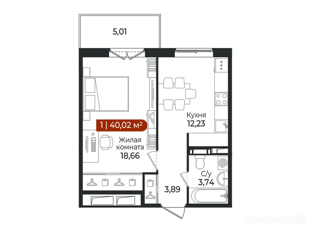 1-комн. квартира 40,02 м2 5 802 900