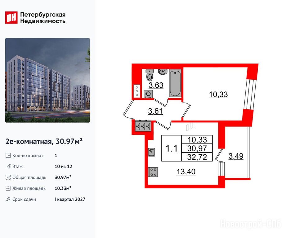 Продается однокомнатная квартира в новостройке ЖК «Бионика Заповедная» по адресу Санкт-Петербург, Приморский, Суздальское шоссе, ЖК «Бионика Заповедная». Общая площадь квартиры - 30.97 кв. м. Тип проекта, по которому построен дом — Монолит, компания-застройщик — Setl Group (Сэтл Групп), ООО СЗ СЭТЛ РАЗВИТИЕ. Стоимость квартиры — 9 850 101 руб. Способы оплаты можно уточнить у продавца. Срок сдачи — 1 квартал 2027. Более подробная информация по телефону.
