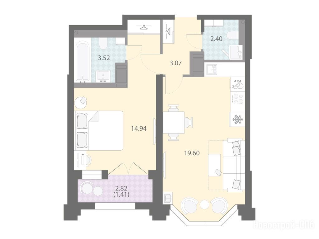 Продается однокомнатная квартира в новостройке ЖК «Цивилизация на Неве» по адресу Санкт-Петербург, Невский, Октябрьская набережная, 42Р. Общая площадь квартиры - 44.94 кв. м. Тип проекта, по которому построен дом — Монолитно-кирпичный, компания-застройщик — ООО «ЛСР. Недвижимость–Северо-Запад». Стоимость квартиры — 13 949 376 руб. Способы оплаты можно уточнить у продавца. Срок сдачи — 3 квартал 2027. Более подробная информация по телефону.