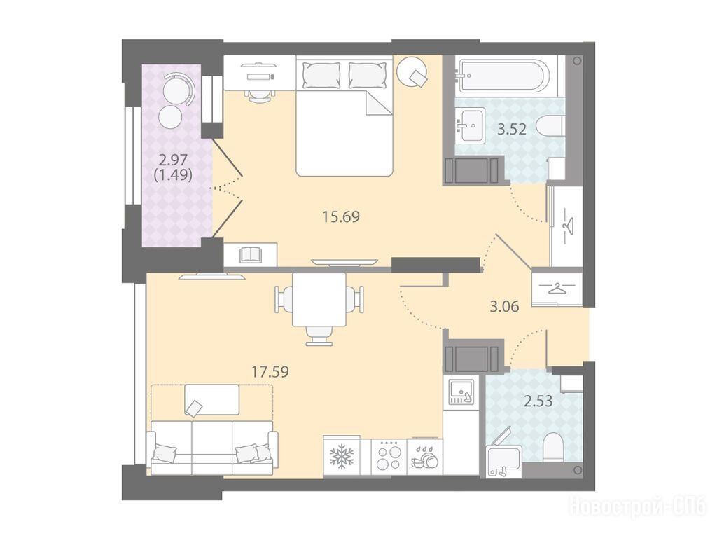 Продается однокомнатная квартира в новостройке ЖК «Цивилизация на Неве» по адресу Санкт-Петербург, Невский, Октябрьская набережная, 42Р. Общая площадь квартиры - 43.88 кв. м. Тип проекта, по которому построен дом — Монолитно-кирпичный, компания-застройщик — ООО «ЛСР. Недвижимость–Северо-Запад». Стоимость квартиры — 15 226 360 руб. Способы оплаты можно уточнить у продавца. Срок сдачи — 3 квартал 2027. Более подробная информация по телефону.