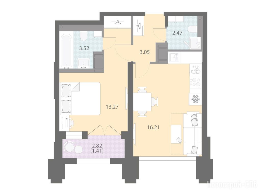 2-комн. квартира 49,21 м2 16 815 057