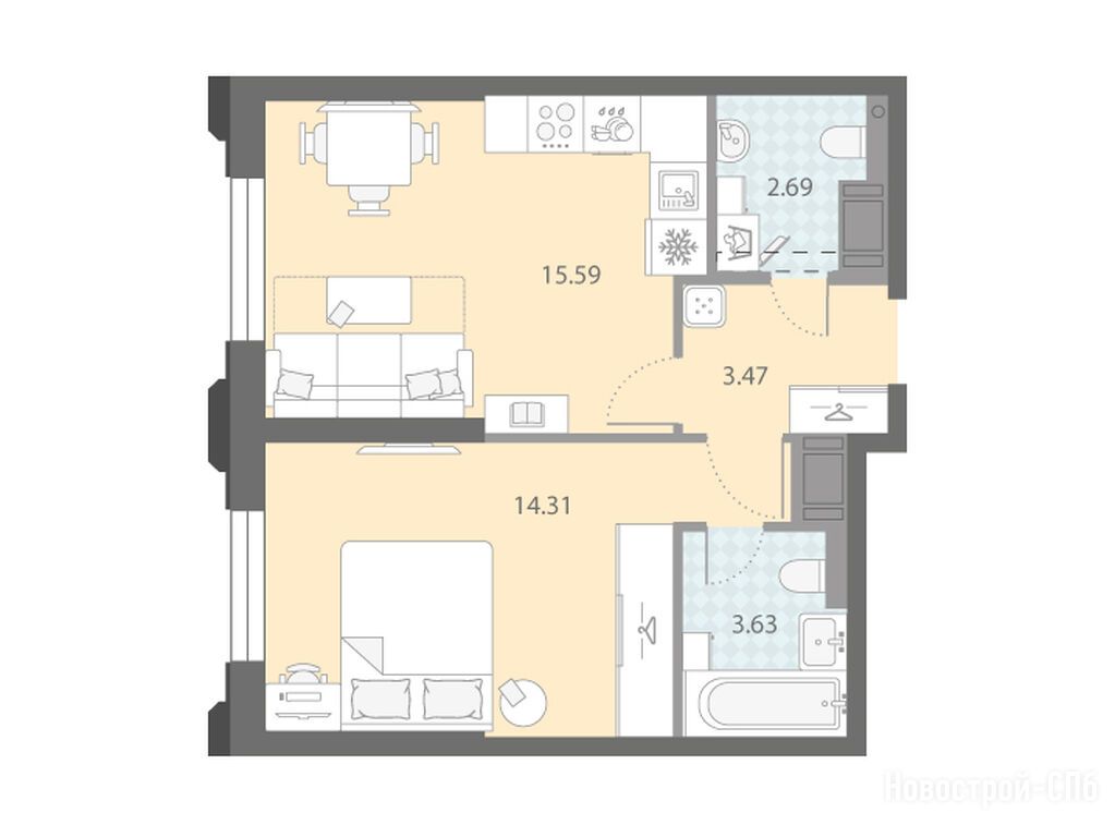 Продается однокомнатная квартира в новостройке ЖК «Цивилизация на Неве» по адресу Санкт-Петербург, Невский, Октябрьская набережная, 42Р. Общая площадь квартиры - 39.69 кв. м. Тип проекта, по которому построен дом — Монолитно-кирпичный, компания-застройщик — ООО «ЛСР. Недвижимость–Северо-Запад». Стоимость квартиры — 12 875 436 руб. Способы оплаты можно уточнить у продавца. Срок сдачи — 3 квартал 2027. Более подробная информация по телефону.
