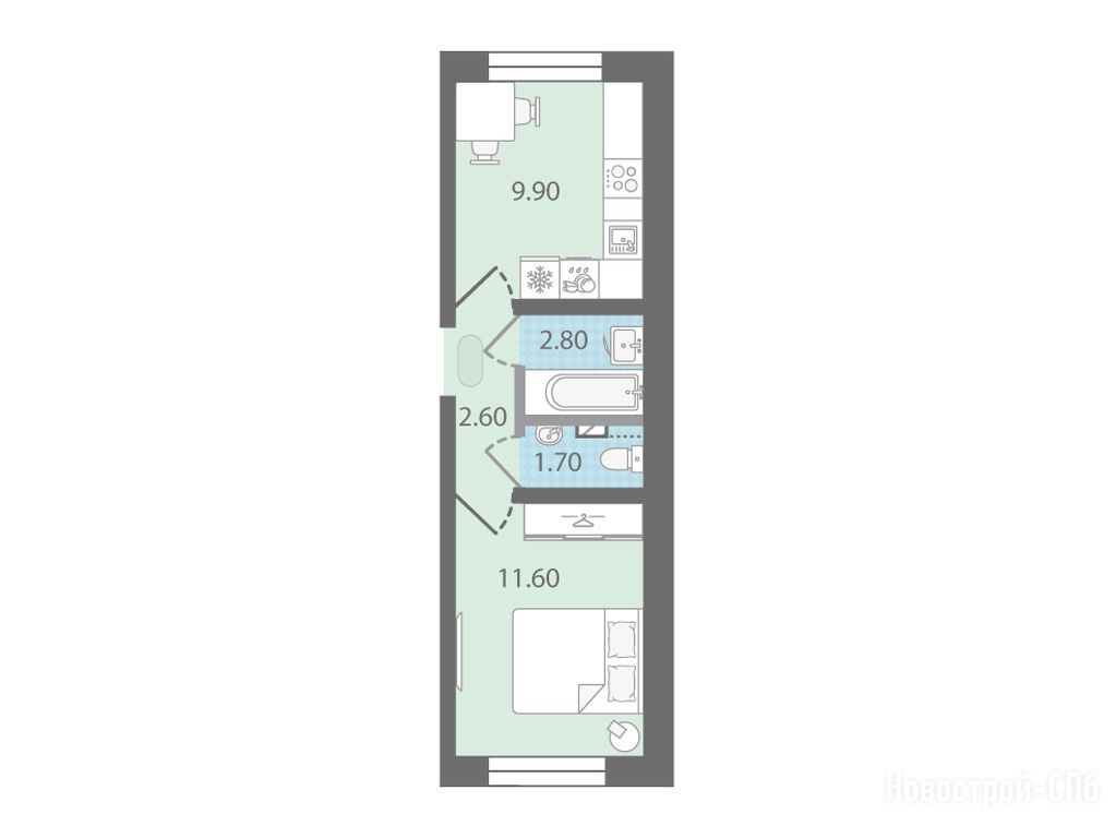 Продается однокомнатная квартира в новостройке ЖК «Цветной город» по адресу Санкт-Петербург, Красногвардейский, Муринская дорога. Общая площадь квартиры - 28.6 кв. м. Тип проекта, по которому построен дом — Монолитно-панельный, компания-застройщик — ООО «ЛСР. Недвижимость–Северо-Запад». Стоимость квартиры — 5 256 680 руб. Способы оплаты можно уточнить у продавца. Срок сдачи — 4 квартал 2025. Более подробная информация по телефону.