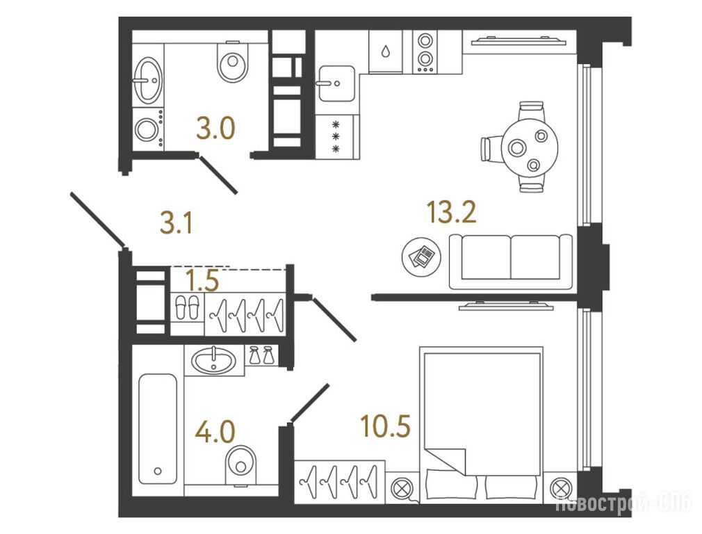 1-комн. квартира 31,60 м2 11 313 701