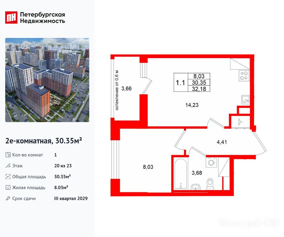 Продается однокомнатная квартира в новостройке ЖК «Город звёзд» по адресу Ленинградская область, Всеволожский район, Поселок им. Свердлова, Новосаратовка дер., ул. Рабочая. Общая площадь квартиры - 30.35 кв. м. Тип проекта, по которому построен дом — Монолитно-кирпичный, компания-застройщик — Setl Group (Сэтл Групп). Стоимость квартиры — 5 500 027 руб. Способы оплаты можно уточнить у продавца. Срок сдачи — 3 квартал 2029. Более подробная информация по телефону.