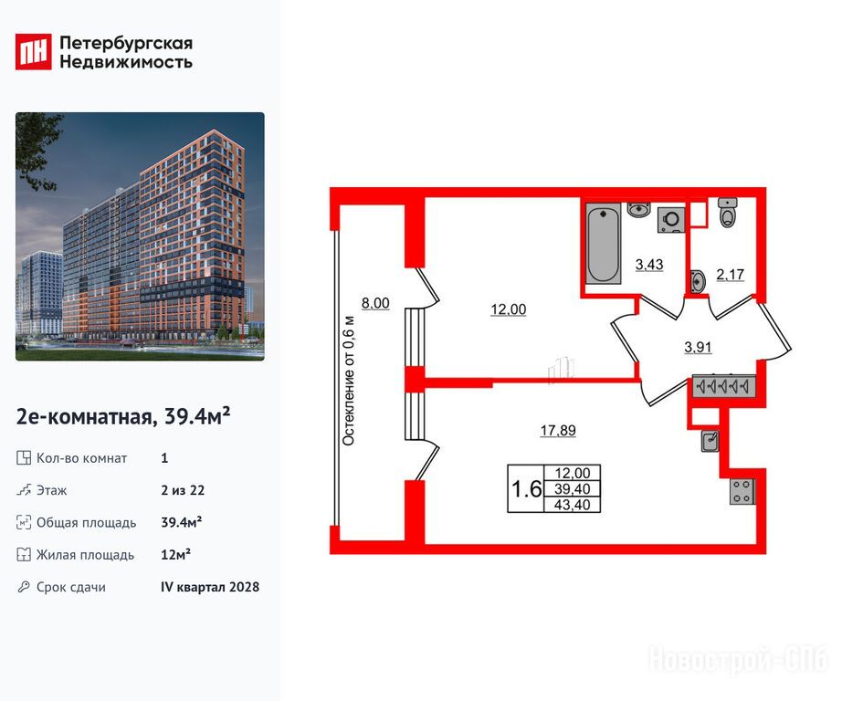 Продается однокомнатная квартира в новостройке ЖК «Город звёзд» по адресу Ленинградская область, Всеволожский район, Поселок им. Свердлова, Новосаратовка дер., ул. Рабочая. Общая площадь квартиры - 39.4 кв. м. Тип проекта, по которому построен дом — Монолитно-кирпичный, компания-застройщик — Setl Group (Сэтл Групп). Стоимость квартиры — 6 850 045 руб. Способы оплаты можно уточнить у продавца. Срок сдачи — 4 квартал 2028. Более подробная информация по телефону.