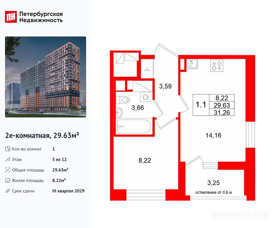 Продается однокомнатная квартира в новостройке ЖК «Город звёзд» по адресу Ленинградская область, Всеволожский район, Поселок им. Свердлова, Новосаратовка дер., ЖК «Город звезд», корпус 13. Общая площадь квартиры - 29.63 кв. м. Тип проекта, по которому построен дом — Монолитно-кирпичный, компания-застройщик — Setl Group (Сэтл Групп). Стоимость квартиры — 5 900 106 руб. Способы оплаты можно уточнить у продавца. Срок сдачи — 3 квартал 2029. Более подробная информация по телефону.