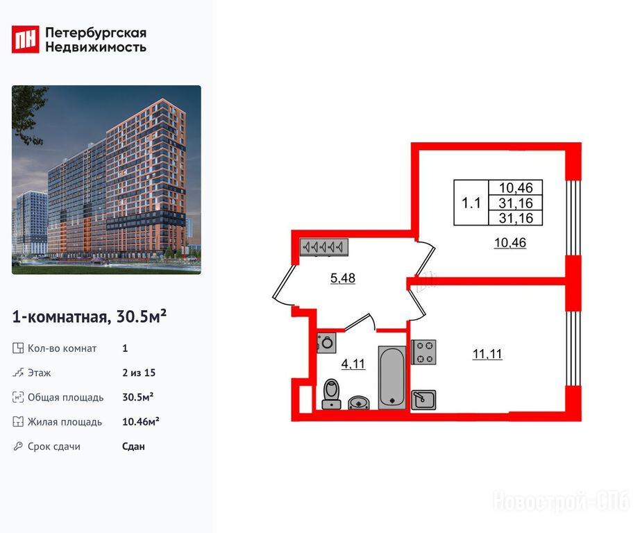 Продается однокомнатная квартира в новостройке ЖК «Город звёзд» по адресу Ленинградская область, Всеволожский район, Поселок им. Свердлова, Новосаратовка дер., ул. Рабочая, д.1. Общая площадь квартиры - 30.5 кв. м. Тип проекта, по которому построен дом — Монолитно-кирпичный, компания-застройщик — Setl Group (Сэтл Групп). Стоимость квартиры — 6 100 256 руб. Способы оплаты можно уточнить у продавца. Более подробная информация по телефону.