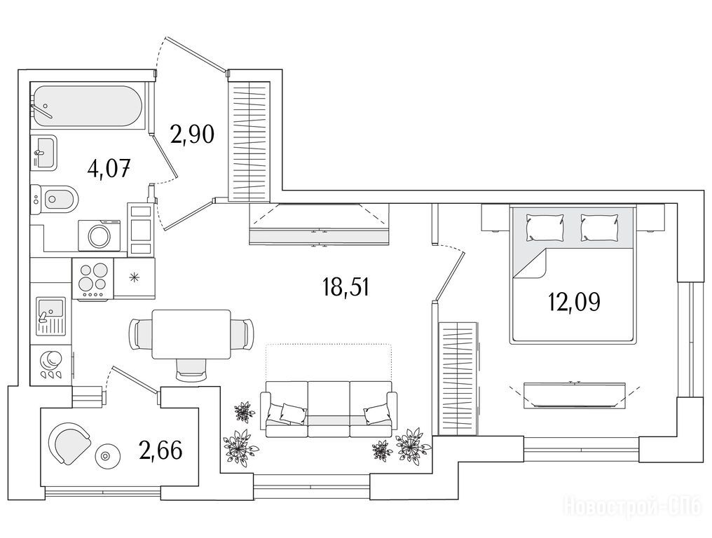 1-комн. квартира 28,57 м2 13 018 752