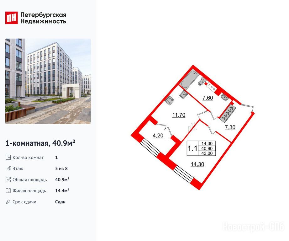 Продается однокомнатная квартира в новостройке ЖК Grand View (Гранд Вью) по адресу Санкт-Петербург, Петроградский, Петровский пр., д. 28, к.1. Общая площадь квартиры - 40.9 кв. м. Тип проекта, по которому построен дом — Монолит, компания-застройщик — Setl Group (Сэтл Групп). Стоимость квартиры — 20 859 000 руб. Способы оплаты можно уточнить у продавца. Более подробная информация по телефону.