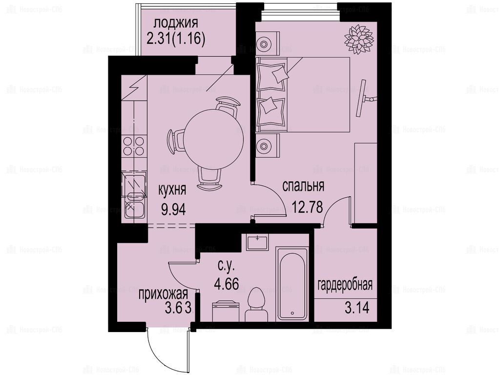 студия 24,54 м2 3 828 240