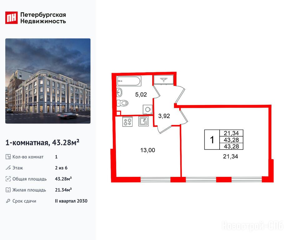 Продается однокомнатная квартира в новостройке ЖК «Кристалл Холл» по адресу Санкт-Петербург, Адмиралтейский, Рижский проспект, 26Б, корпус 1. Общая площадь квартиры - 43.28 кв. м. Тип проекта, по которому построен дом — Монолитно-кирпичный, компания-застройщик — Setl Group (Сэтл Групп), СЗ «Рижский 26». Стоимость квартиры — 28 045 440 руб. Способы оплаты можно уточнить у продавца. Срок сдачи — 2 квартал 2030. Более подробная информация по телефону.