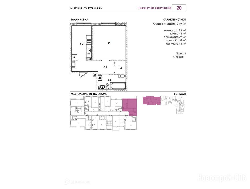Продается однокомнатная квартира в новостройке ЖК «Куприн» по адресу Ленинградская область, Гатчинский район, Гатчина, улица Куприна, 26. Общая площадь квартиры - 34.9 кв. м. Тип проекта, по которому построен дом — Панельный, компания-застройщик — СЗ Возрождение. Стоимость квартиры — 4 362 500 руб. Способы оплаты можно уточнить у продавца. Более подробная информация по телефону.