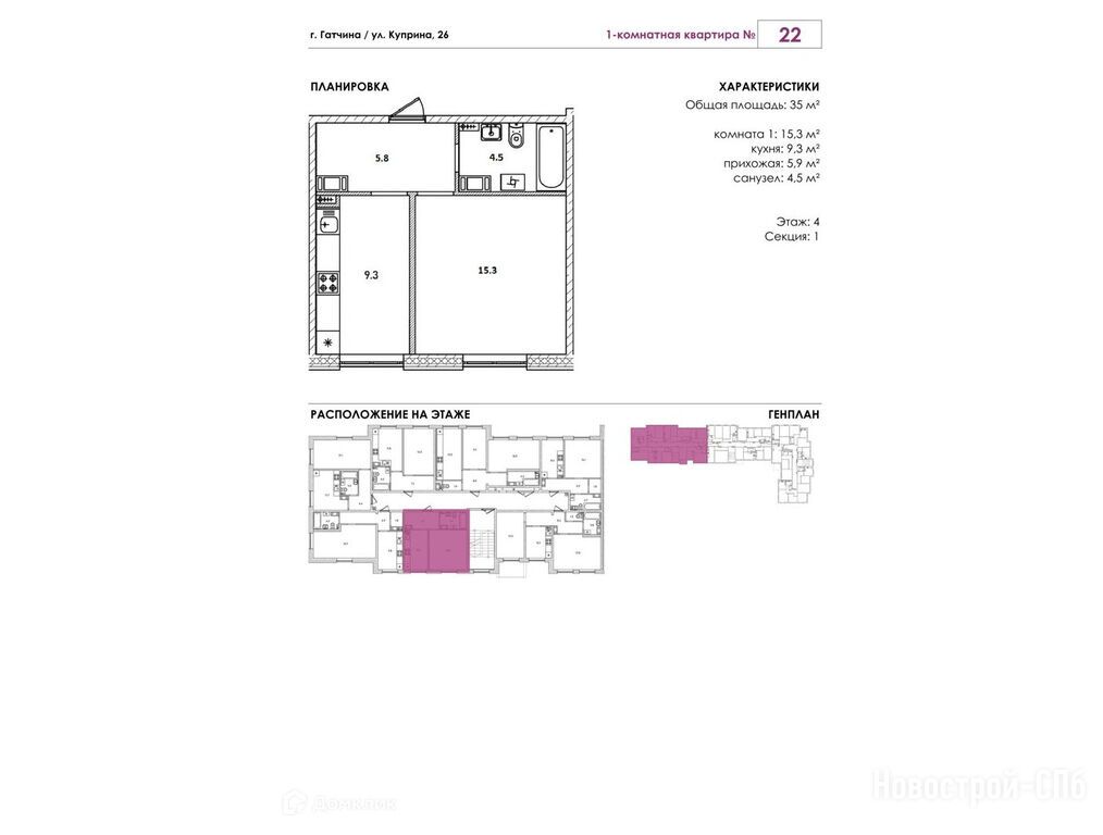 Продается однокомнатная квартира в новостройке ЖК «Куприн» по адресу Ленинградская область, Гатчинский район, Гатчина, улица Куприна, 26. Общая площадь квартиры - 35 кв. м. Тип проекта, по которому построен дом — Панельный, компания-застройщик — СЗ Возрождение. Стоимость квартиры — 4 375 000 руб. Способы оплаты можно уточнить у продавца. Более подробная информация по телефону.
