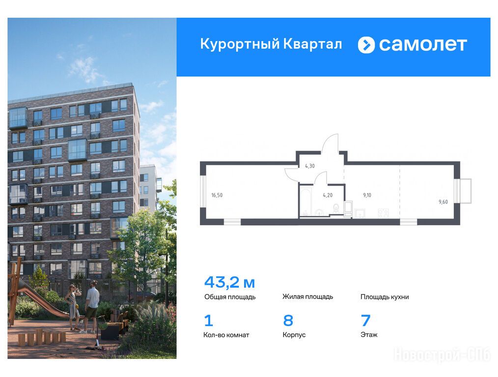 Продается однокомнатная квартира в новостройке ЖК «Курортный Квартал» по адресу Санкт-Петербург, Курортный, п. Песочный, ул. Садовая, д. 81, 83, 85, 88, 90, участки 581, 582. Общая площадь квартиры - 43.2 кв. м. Тип проекта, по которому построен дом — Монолитно-кирпичный, компания-застройщик — Самолет. Стоимость квартиры — 9 415 656 руб. Способы оплаты можно уточнить у продавца. Более подробная информация по телефону.