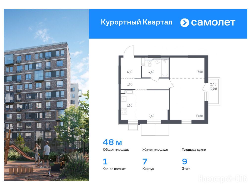 Продается однокомнатная квартира в новостройке ЖК «Курортный Квартал» по адресу Санкт-Петербург, Курортный, п. Песочный, ул. Садовая, д. 81, 83, 85, 88, 90, участки 581, 582. Общая площадь квартиры - 48 кв. м. Тип проекта, по которому построен дом — Монолитно-кирпичный, компания-застройщик — Самолет. Стоимость квартиры — 10 585 968 руб. Способы оплаты можно уточнить у продавца. Более подробная информация по телефону.