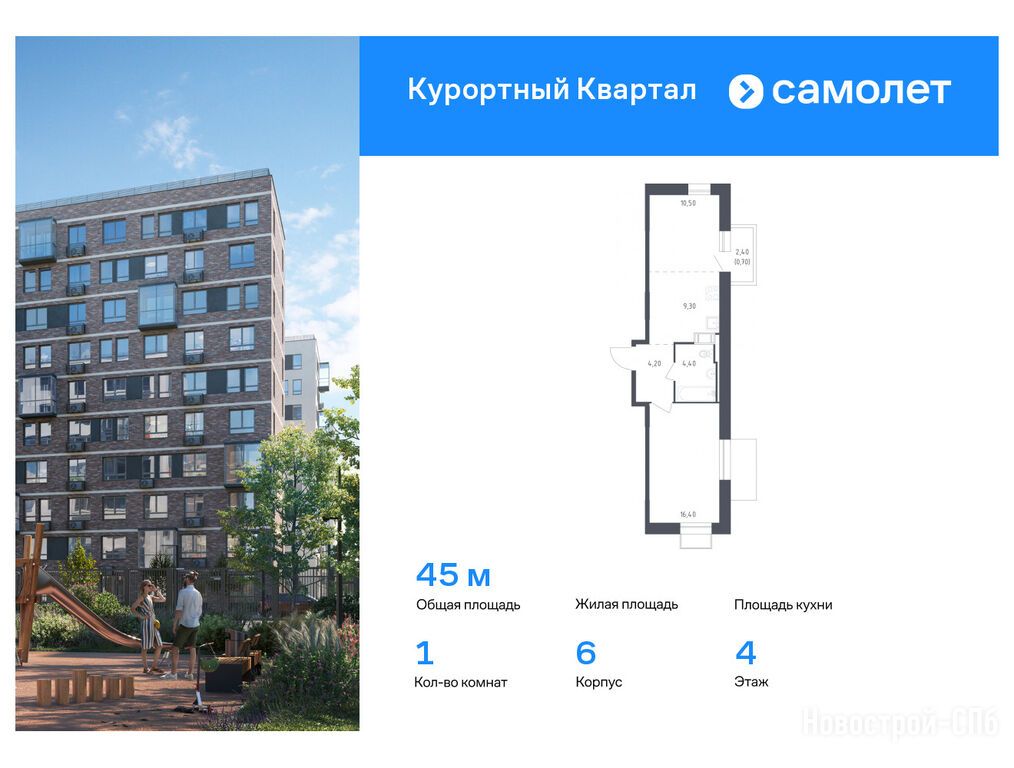Продается однокомнатная квартира в новостройке ЖК «Курортный Квартал» по адресу Санкт-Петербург, Курортный, п. Песочный, ул. Садовая, д. 81, 83, 85, 88, 90, участки 581, 582. Общая площадь квартиры - 45 кв. м. Тип проекта, по которому построен дом — Монолитно-кирпичный, компания-застройщик — Самолет. Стоимость квартиры — 10 111 275 руб. Способы оплаты можно уточнить у продавца. Более подробная информация по телефону.