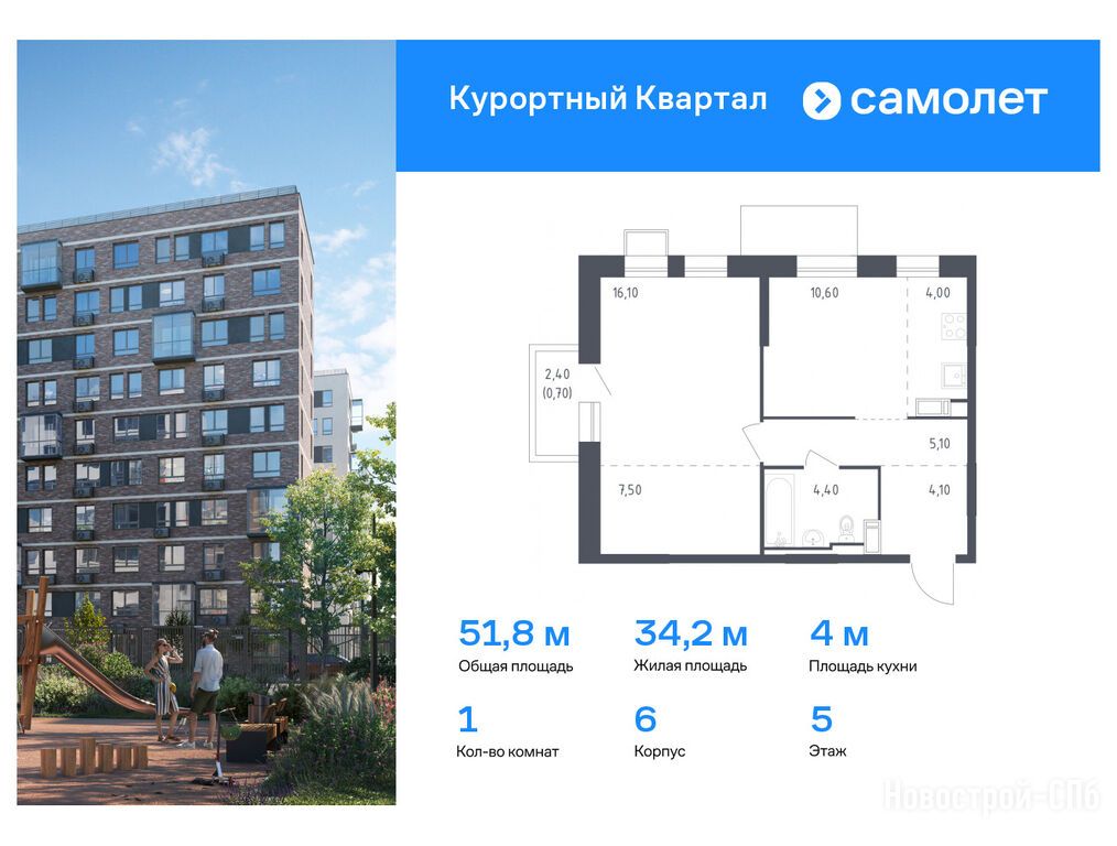 Продается однокомнатная квартира в новостройке ЖК «Курортный Квартал» по адресу Санкт-Петербург, Курортный, п. Песочный, ул. Садовая, д. 81, 83, 85, 88, 90, участки 581, 582. Общая площадь квартиры - 51.8 кв. м. Тип проекта, по которому построен дом — Монолитно-кирпичный, компания-застройщик — Самолет. Стоимость квартиры — 11 362 071 руб. Способы оплаты можно уточнить у продавца. Более подробная информация по телефону.