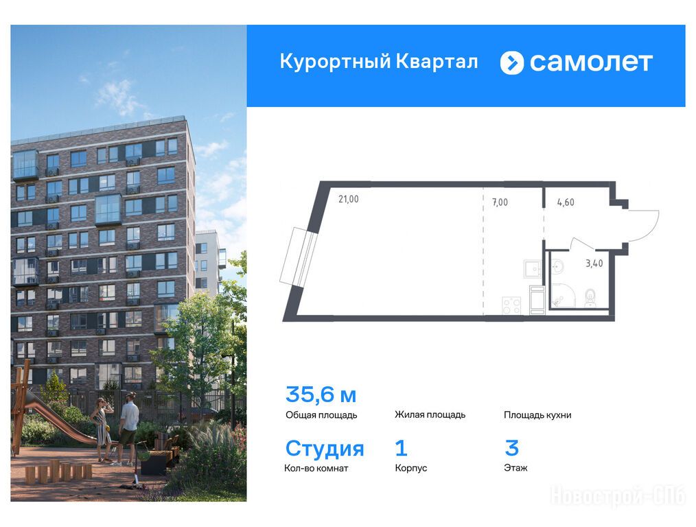 Продается однокомнатная квартира в новостройке ЖК «Курортный Квартал» по адресу Санкт-Петербург, Курортный, п. Песочный, ул. Садовая, д. 81, 83, 85, 88, 90, участки 581, 582. Общая площадь квартиры - 35.6 кв. м. Тип проекта, по которому построен дом — Монолитно-кирпичный, компания-застройщик — Самолет. Стоимость квартиры — 6 645 396 руб. Способы оплаты можно уточнить у продавца. Более подробная информация по телефону.
