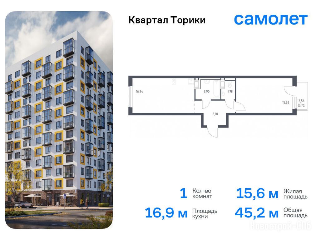 Продается однокомнатная квартира в новостройке ЖК «Квартал Торики» по адресу Ленинградская область, Ломоносовский район, Виллозское г.п., пос. Новогорелово. Общая площадь квартиры - 45.19 кв. м. Тип проекта, по которому построен дом — Монолитно-кирпичный, компания-застройщик — Самолет. Стоимость квартиры — 8 275 444 руб. Способы оплаты можно уточнить у продавца. Срок сдачи — 1 квартал 2026. Более подробная информация по телефону.