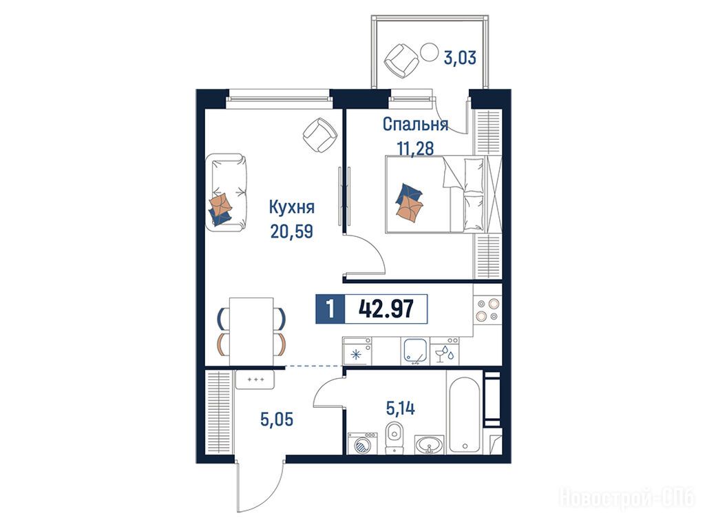 Продается однокомнатная квартира в новостройке ЖК «Максималист» по адресу Ленинградская область, Всеволожский район, Мурино, Мурино, ул. Романовская. Общая площадь квартиры - 42.97 кв. м. Тип проекта, по которому построен дом — Монолитно-кирпичный, компания-застройщик — Инвестиционно-строительная группа «МАВИС». Стоимость квартиры — 8 108 439 руб. Способы оплаты можно уточнить у продавца. Срок сдачи — 4 квартал 2027. Более подробная информация по телефону.