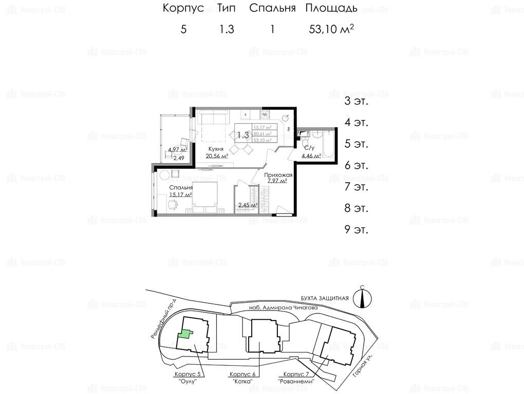 Продается однокомнатная квартира в новостройке ЖК «Малая Финляндия» по адресу Ленинградская область, Выборгский район, Выборг, ул. Горная, корпус Оулу (М5). Общая площадь квартиры - 53.1 кв. м. Тип проекта, по которому построен дом — Монолит, компания-застройщик — КапСтрой. Стоимость квартиры — 12 213 000 руб. Способы оплаты можно уточнить у продавца. Более подробная информация по телефону.