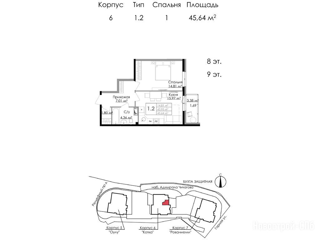 Продается однокомнатная квартира в новостройке ЖК «Малая Финляндия» по адресу Ленинградская область, Выборгский район, Выборг, ул. Горная, корпус Котка (М6). Общая площадь квартиры - 45.64 кв. м. Тип проекта, по которому построен дом — Монолит, компания-застройщик — КапСтрой. Стоимость квартиры — 9 200 000 руб. Способы оплаты можно уточнить у продавца. Более подробная информация по телефону.