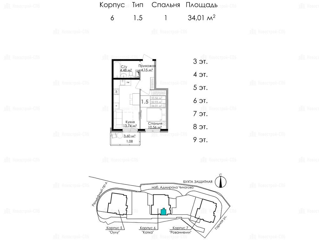 Продается однокомнатная квартира в новостройке ЖК «Малая Финляндия» по адресу Ленинградская область, Выборгский район, Выборг, ул. Горная, корпус Котка (М6). Общая площадь квартиры - 34.01 кв. м. Тип проекта, по которому построен дом — Монолит, компания-застройщик — КапСтрой. Стоимость квартиры — 6 631 950 руб. Способы оплаты можно уточнить у продавца. Более подробная информация по телефону.