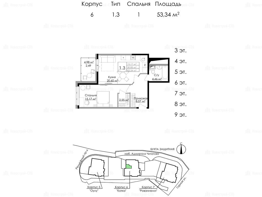 Продается однокомнатная квартира в новостройке ЖК «Малая Финляндия» по адресу Ленинградская область, Выборгский район, Выборг, ул. Горная, корпус Котка (М6). Общая площадь квартиры - 53.34 кв. м. Тип проекта, по которому построен дом — Монолит, компания-застройщик — КапСтрой. Стоимость квартиры — 10 000 000 руб. Способы оплаты можно уточнить у продавца. Более подробная информация по телефону.
