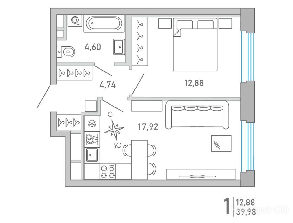 Продается однокомнатная квартира в новостройке ЖК «Министр» по адресу Санкт-Петербург, Приморский, набережная Чёрной речки, 1. Общая площадь квартиры - 39.91 кв. м. Тип проекта, по которому построен дом — Монолитно-кирпичный, компания-застройщик — ООО «СЗ Дом на Черной речке», City Solutions. Стоимость квартиры — 23 016 078 руб. Способы оплаты можно уточнить у продавца. Срок сдачи — 4 квартал 2026. Более подробная информация по телефону.