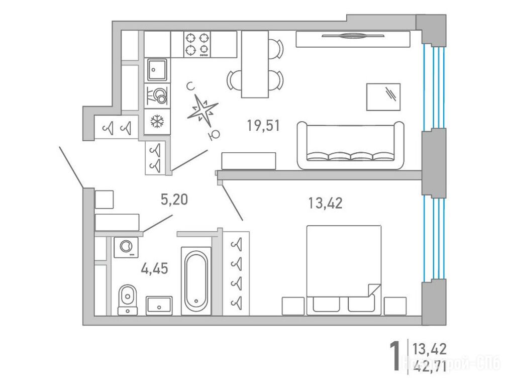 Продается однокомнатная квартира в новостройке ЖК «Министр» по адресу Санкт-Петербург, Приморский, набережная Чёрной речки, 1. Общая площадь квартиры - 42.63 кв. м. Тип проекта, по которому построен дом — Монолитно-кирпичный, компания-застройщик — ООО «СЗ Дом на Черной речке», City Solutions. Стоимость квартиры — 23 540 457 руб. Способы оплаты можно уточнить у продавца. Срок сдачи — 4 квартал 2026. Более подробная информация по телефону.