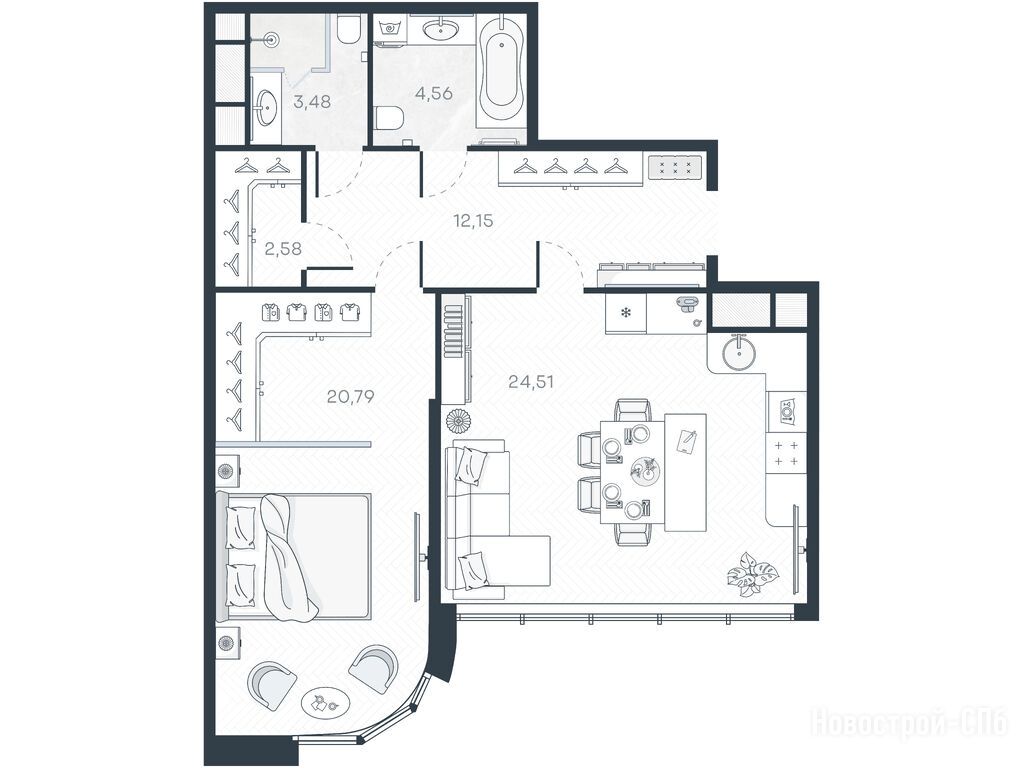 Планировки здесь просто находка! Я искал квартиру долго, но именно здесь нашел идеальную трешку с продуманным пространством. Никаких “мертвых” зон, всё очень функционально.