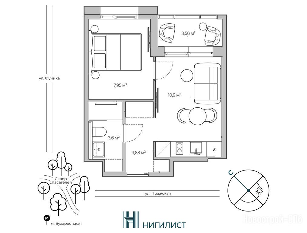 Продается однокомнатная квартира в новостройке ЖК «Нигилист» по адресу Санкт-Петербург, Фрунзенский, ул. Фучика, д. 17В. Общая площадь квартиры - 29.97 кв. м. Тип проекта, по которому построен дом — Монолит, компания-застройщик — Bau City Development (Бау Сити Девелопмент). Стоимость квартиры — 11 694 977 руб. Способы оплаты можно уточнить у продавца. Срок сдачи — 1 квартал 2028. Более подробная информация по телефону.