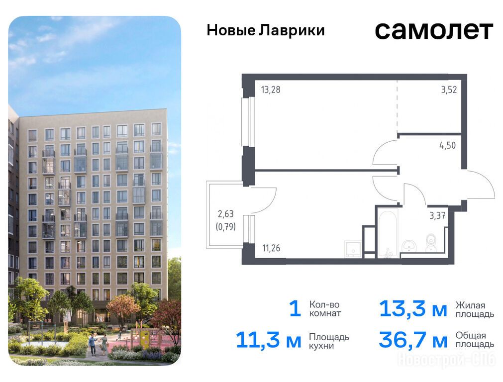 Продается однокомнатная квартира в новостройке ЖК «Новые Лаврики» по адресу Ленинградская область, Всеволожский район, Мурино, Мурино, ЖК «Новые Лаврики». Общая площадь квартиры - 36.72 кв. м. Тип проекта, по которому построен дом — Монолитно-кирпичный, компания-застройщик — ООО СЗ САМОЛЕТ-ЛАВРИКИ, Самолет. Стоимость квартиры — 7 126 214 руб. Способы оплаты можно уточнить у продавца. Срок сдачи — 4 квартал 2026. Более подробная информация по телефону.