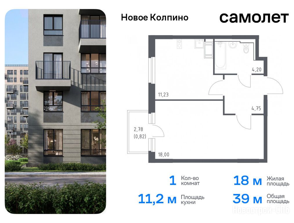 Продается однокомнатная квартира в новостройке ЖК «Новое Колпино» по адресу Санкт-Петербург, Колпинский, Колпино, ЖК «Новое Колпино», корп. 33. Общая площадь квартиры - 39 кв. м. Тип проекта, по которому построен дом — Монолитно-кирпичный, компания-застройщик — ООО «СПб Реновация», Самолет. Стоимость квартиры — 8 262 501 руб. Способы оплаты можно уточнить у продавца. Срок сдачи — 1 квартал 2026. Более подробная информация по телефону.