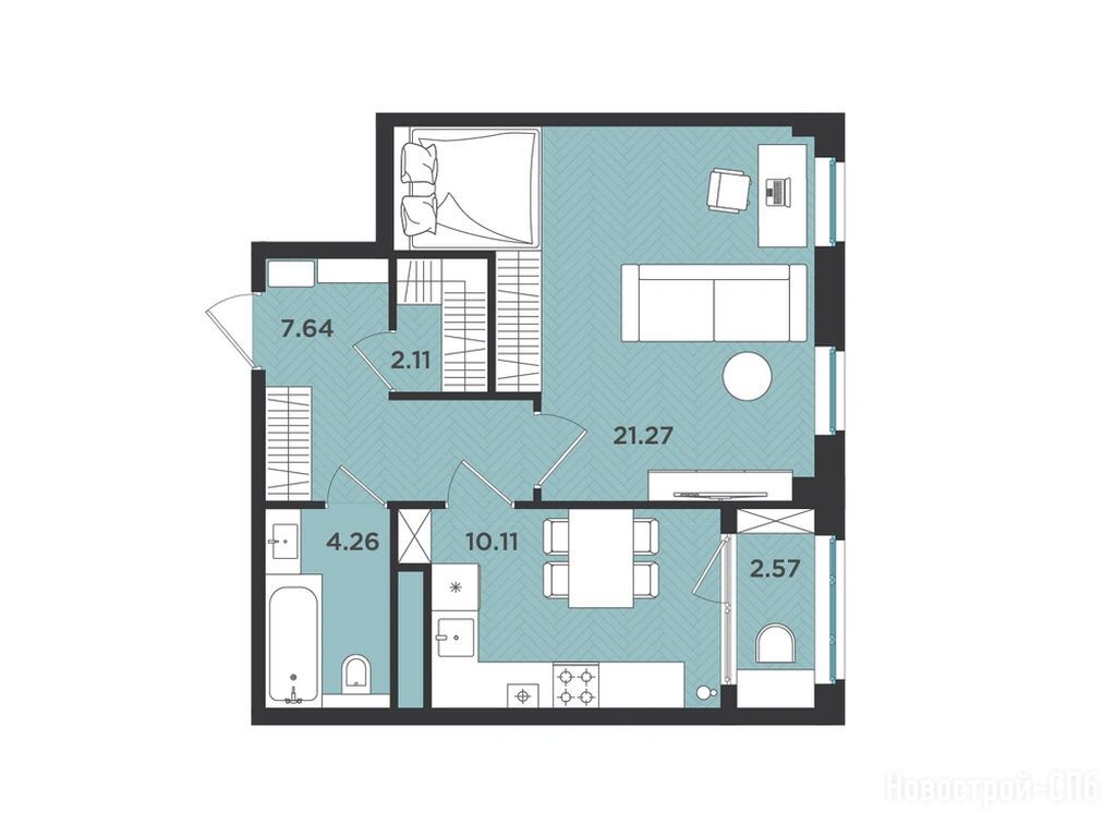1-комн. квартира, 47.96 м2, 2 этаж