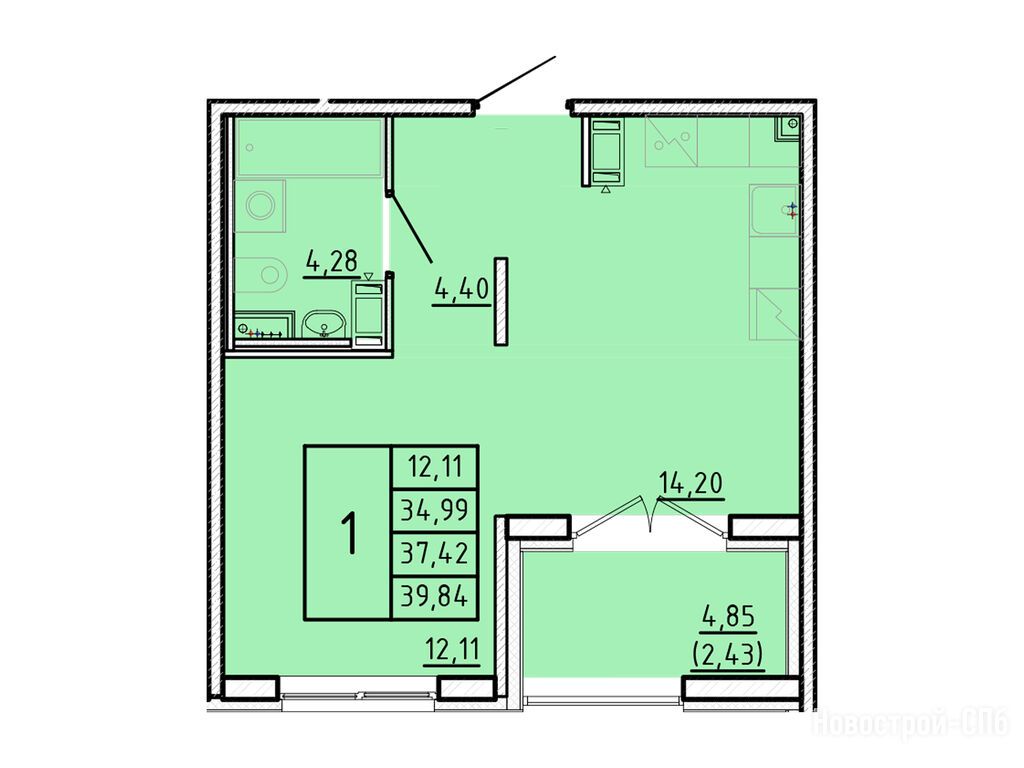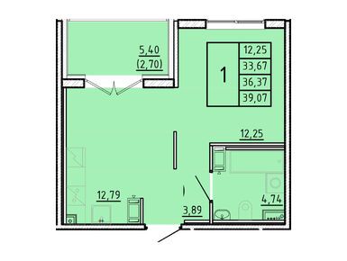 1-комн. квартира, 33.67 м