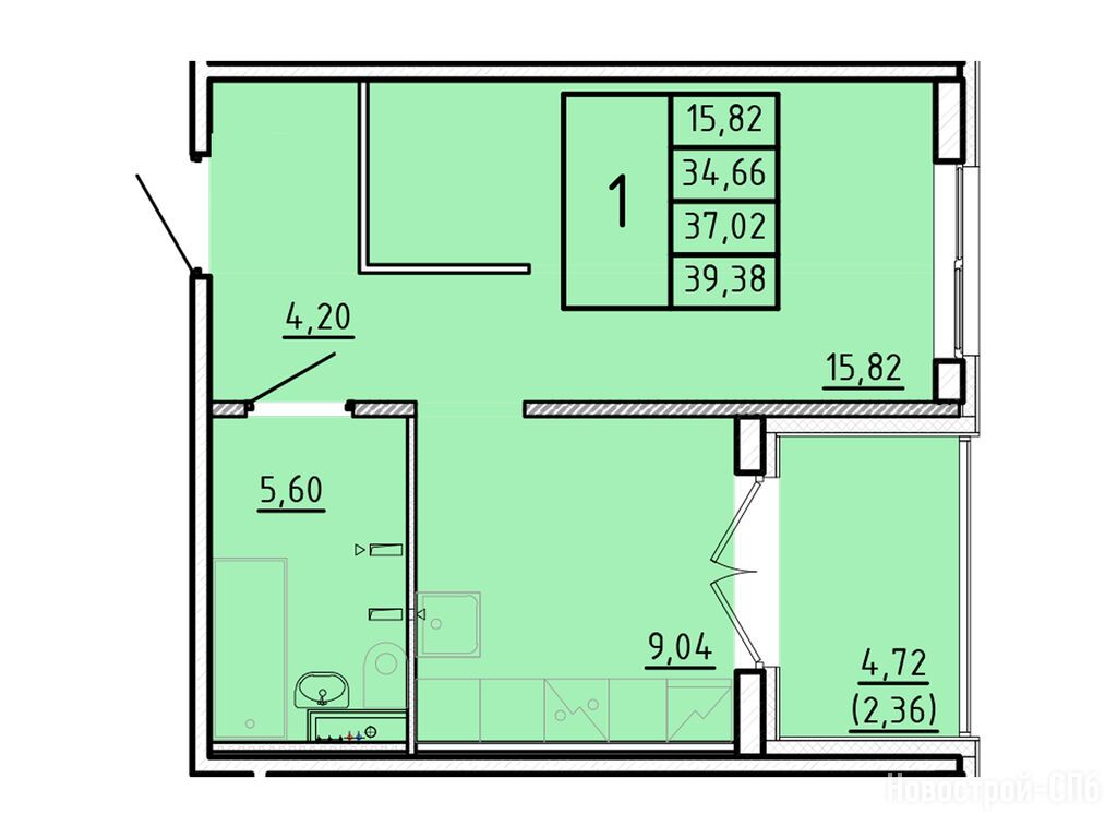 1-комн. квартира, 34.66 м