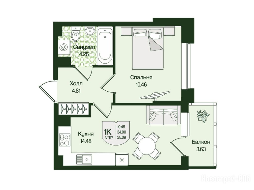 Продается однокомнатная квартира в новостройке ЖК «Охтинские высоты» по адресу Ленинградская область, Всеволожский район, ул. Короткая, корп. 4. Общая площадь квартиры - 35.09 кв. м. Тип проекта, по которому построен дом — Монолитно-кирпичный, компания-застройщик — ООО «СЗ НОВОЕ ИЗМЕРЕНИЕ МИСТОЛОВО», ГК «Новое Измерение». Стоимость квартиры — 8 566 971 руб. Способы оплаты можно уточнить у продавца. Срок сдачи — 2 квартал 2027. Более подробная информация по телефону.
