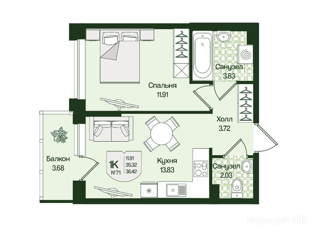Продается однокомнатная квартира в новостройке ЖК «Охтинские высоты» по адресу Ленинградская область, Всеволожский район, ул. Короткая, корп. 4. Общая площадь квартиры - 36.42 кв. м. Тип проекта, по которому построен дом — Монолитно-кирпичный, компания-застройщик — ООО «СЗ НОВОЕ ИЗМЕРЕНИЕ МИСТОЛОВО», ГК «Новое Измерение». Стоимость квартиры — 8 891 681 руб. Способы оплаты можно уточнить у продавца. Срок сдачи — 2 квартал 2027. Более подробная информация по телефону.