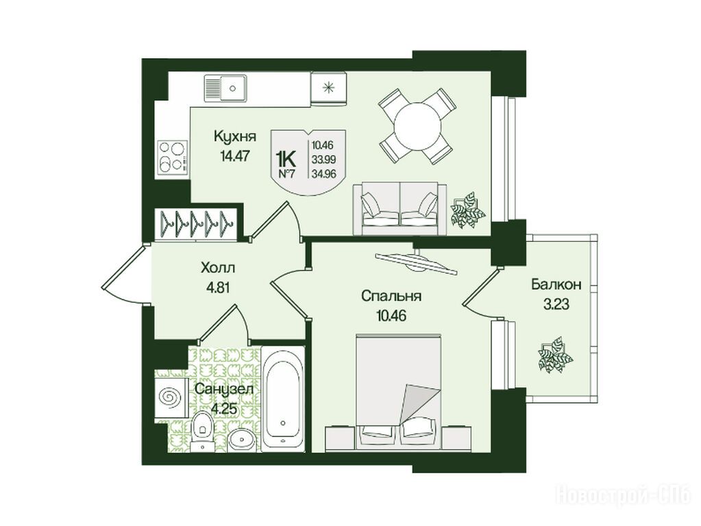 1-комн. квартира 34,96 м2 8 535 232